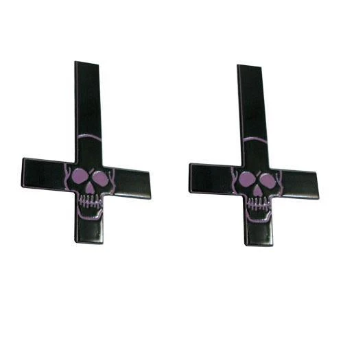 Kreepsville Inverted Cross Skull Hairslides Purple Accessories