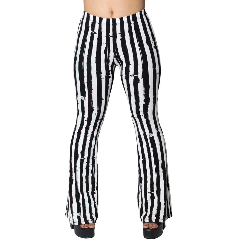 Kreepsville Women’s Distressed Stripe White Flare Leggings